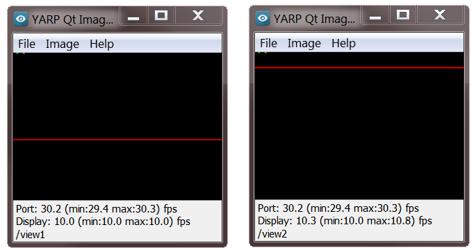 As an example the images above show two instances of yarpview. In this case the port receives data with the framerate of 30Hz while the display runs at 10Hz. Images are from two instances of "fakeFrameGrabber".